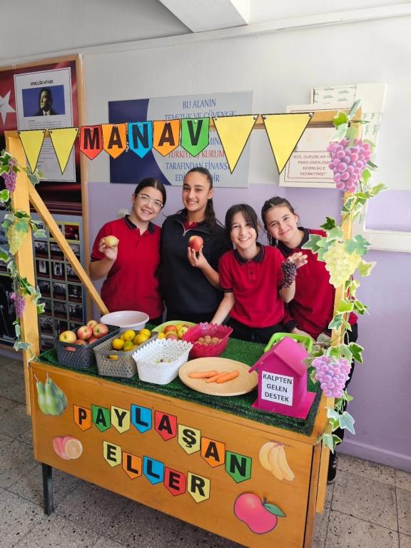 Proje kapsamında öğrencilerle birlikte okulun icinde uygun bir alanda satış yapmak üzere küçük bir manav stantı hazırladık.